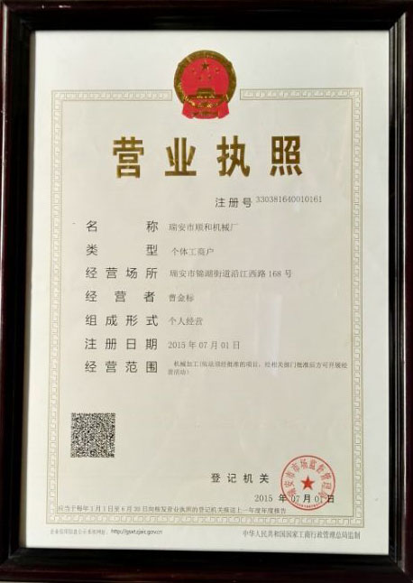 瑞安市順和機(jī)械廠營業(yè)執(zhí)照